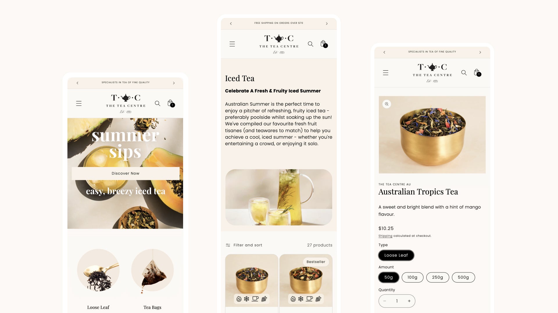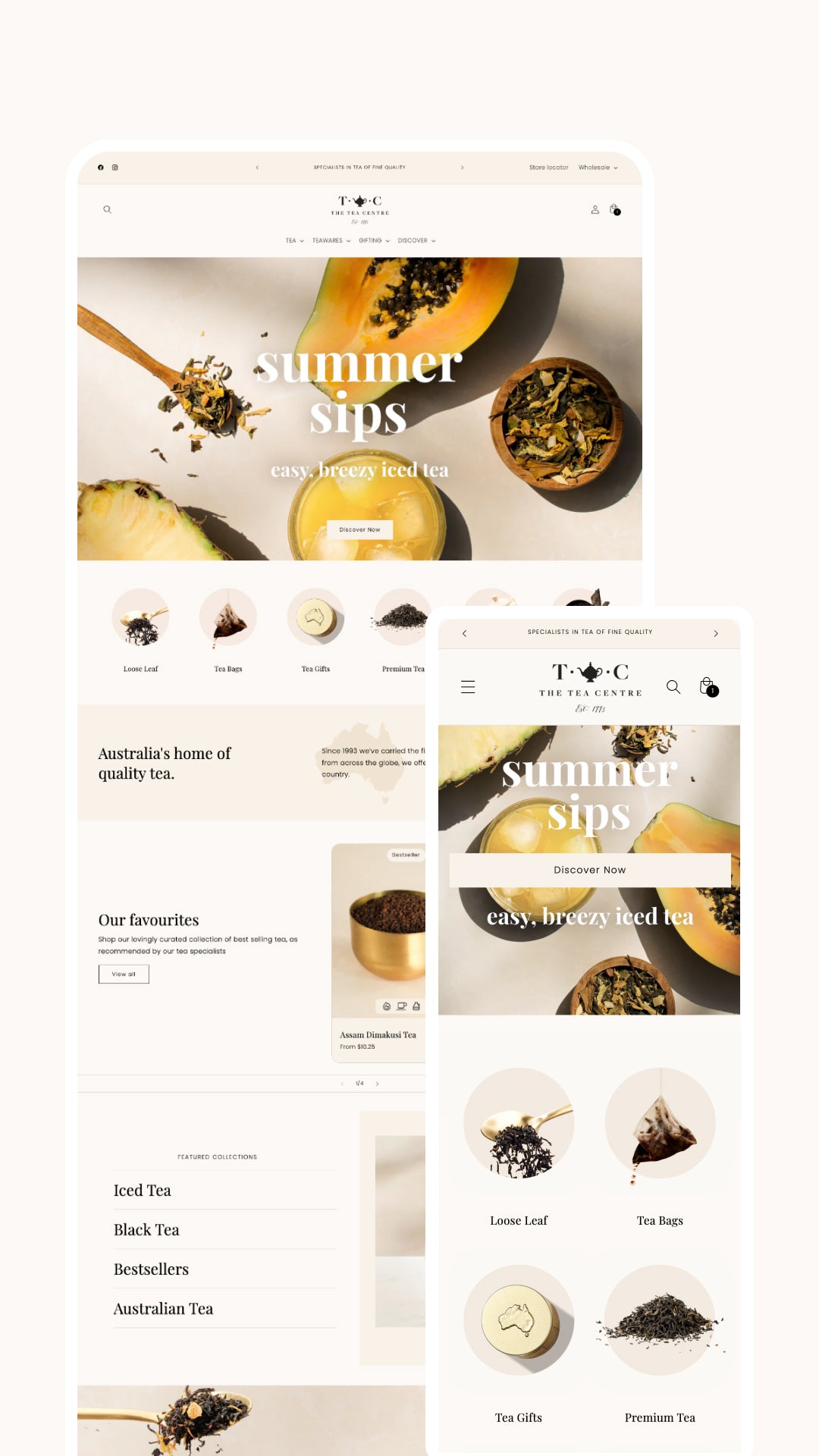 The Tea Centre is an iconic Australian brand, growing from humble beginnings in a small Sydney store to become Australia's most trusted tea experts. They came to us with a WordPress/WooCommerce store that was clunky, difficult to use (both for customers and internal staff) and no longer reflected the quality of service they provide. It was time to set sail for Shopify!